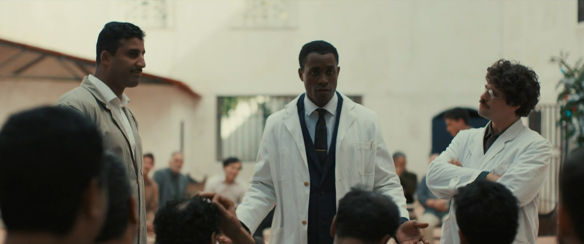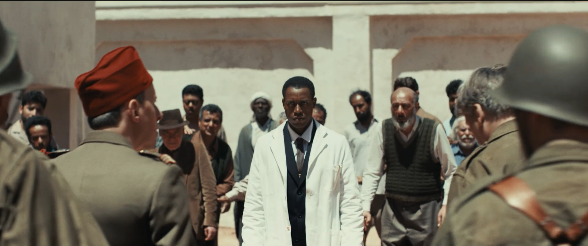 Oui, avec notamment ceux qui interprètent les malades algériens de l’hôpital de Blida. Il y a différents niveaux et de cultures de jeu à l’intérieur du film, j’ai privilégié l’authenticité, j’ai laissé les comédiens jouer là où ils étaient bons. Tous venaient de parcours différents. Pour les quinze hommes qui interprétaient les internés algériens, tous avaient une fragilité. Deux semaines avant le tournage, j’ai travaillé avec chacun d’entre eux, en leur expliquant l’histoire du personnage. Dès qu’ils entraient sur le tournage, ils étaient déjà dans leurs rôles, je savais que je pouvais les laisser vivre avec ce qui se passait dans le plan. Chaque fois qu’on était dans l’hôpital, je peux dire qu’on était dans la vérité, celle qui leur appartenait car chacun des hommes jouait avec sa propre blessure et vulnérabilité. Avec Mehdi Senoussi qui joue Hocine, l’acolyte de Fanon, c’était incroyable. Mehdi Senoussi est d’origine algérienne, tout comme Salem Kali (Abane Ramdane). Tout deux étaient déterminés à rendre le plus crédible possible leurs personnages, surtout dans ce contexte historique. Le tournage a duré sept semaines, pour trois heures de film qu’on a ramené à deux heures dix. Je tenais à rendre hommage au peuple algérien en filmant son enterrement avec ses chants qui montent, une langue poétique dont l’importance est parfois négligée. J’invite le spectateur à écouter ces sourates d’apaisement et de compassion. Le premier plan s’ouvre en Martinique et se termine en Algérie. Il est né quelque part et mort quelque part.